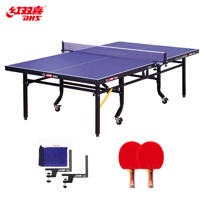 红双喜(DHS)乒乓球桌 折叠式标准比赛球台T2024(附网架一副、乒拍两只)